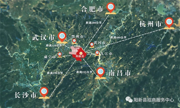 陽新位于武漢“1+8”城市圈,西接京廣,南通京九,北連武黃,距離武漢市120公里,南昌市145公里。長江黃金水道過境45公里,目前擁有1個億噸大港,2座長江大橋,3座高鐵站,3條國道,4條一級公路,5條高速,1小時可至鄂州順豐國際機場,2小時可至武漢天河國際機場及南昌昌北國際機場,疊加臨空臨港臨鐵臨水優勢,初步形成公、鐵、水、空四位一體的多式聯運體系,正在成為通向全國、聯通世界的“中轉港”“樞紐港”“國際港”。