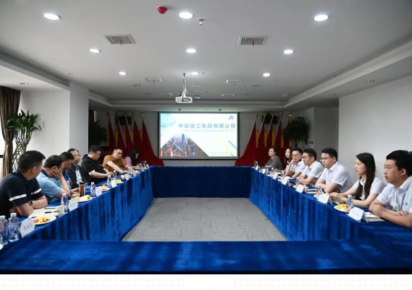 在集團會議室,武漢市黃石商會、武漢市陽新商會相關領導一行聽取了中建建工集團董事長張吉河關于企業概況、企業團隊、企業歷史沿革、改革與發展、企業資質、企業榮譽、經營方向、項目工程等全方位的綜合匯報。