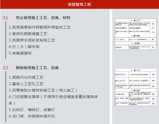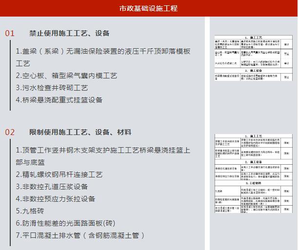 (一)發(fā)布之日起9個(gè)月后,全面停止在新開(kāi)工項(xiàng)目中使用本《目錄》所列禁止類施工工藝、設(shè)備和材料。 (二)發(fā)布之日起6個(gè)月后,新開(kāi)工項(xiàng)目不得在限制條件和范圍內(nèi)使用本《目錄》所列限制類施工工藝、設(shè)備和材料。 (三)可替代的工藝、設(shè)備、材料包括但不限于《目錄》中所列名稱。 (四)《目錄》中列出的工藝、設(shè)備、材料淘汰范圍,適用于新建、改建、擴(kuò)建的房屋建筑和市政工程,不適用于限額以下工程、臨時(shí)工程、日常維修養(yǎng)護(hù)工程。